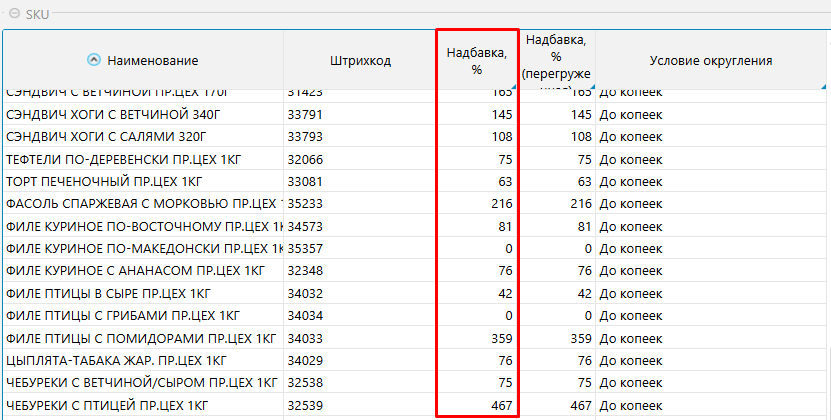 Справа в общем списке товаров, можно установить надбавку для каждой отдельной позиции: