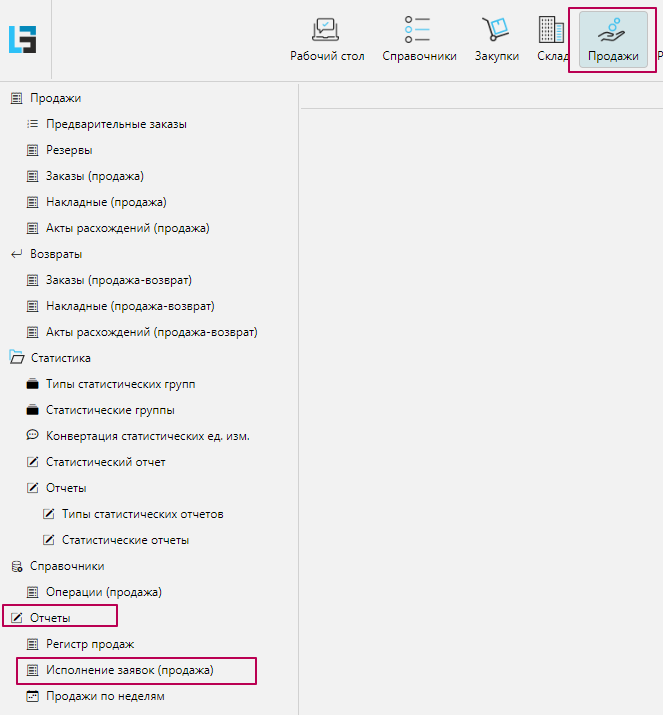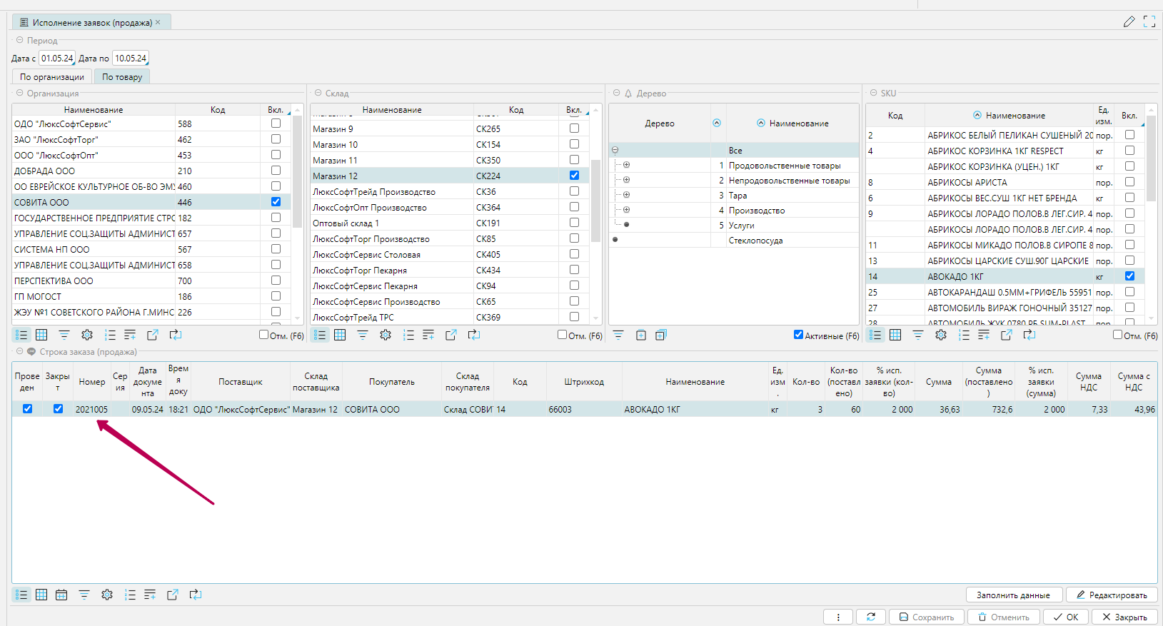 Модуль Продажи / раздел Отчеты/ форма Исполнение заявок(продажа)