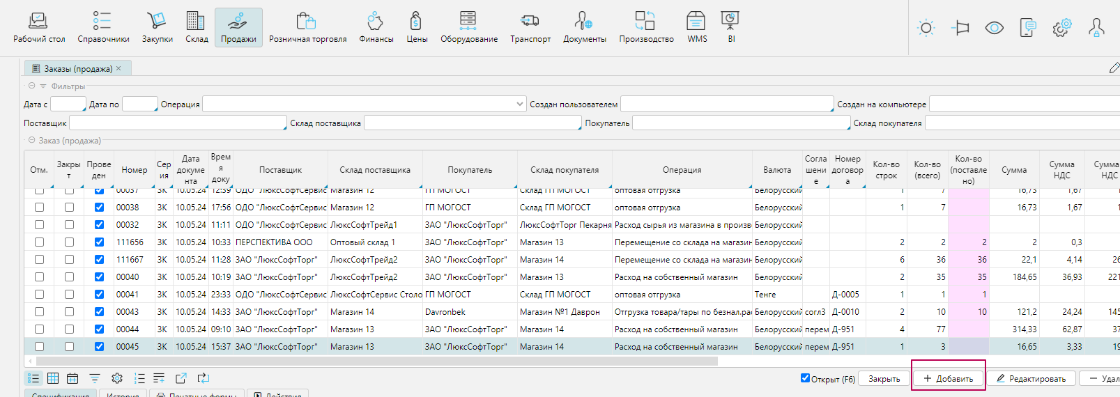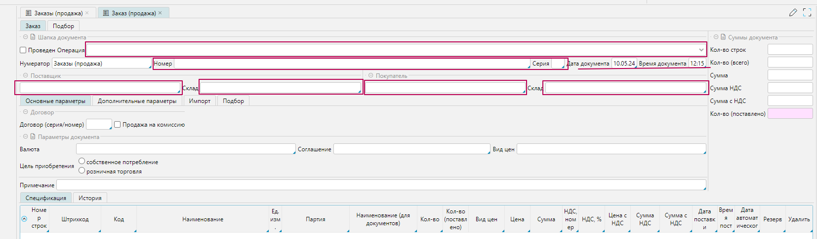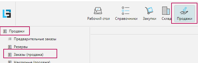 Модуль Продажи / раздел Продажи / форма Заказы(продажа)