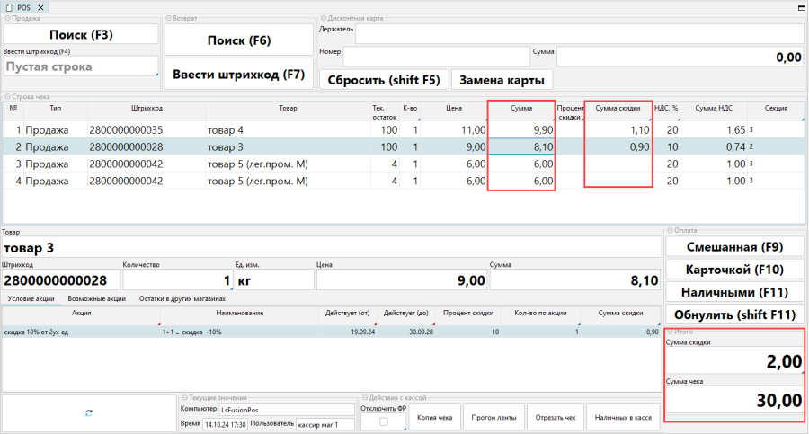 *Рис. 6 Применение скидки кассиром *