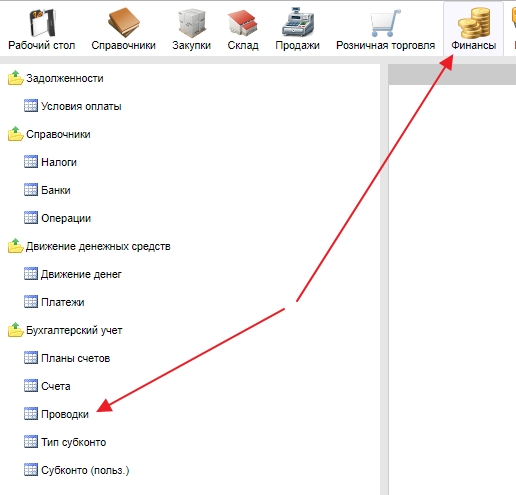 Проводки формируются в меню Финансы - Бухгалтерский учет - Проводки.